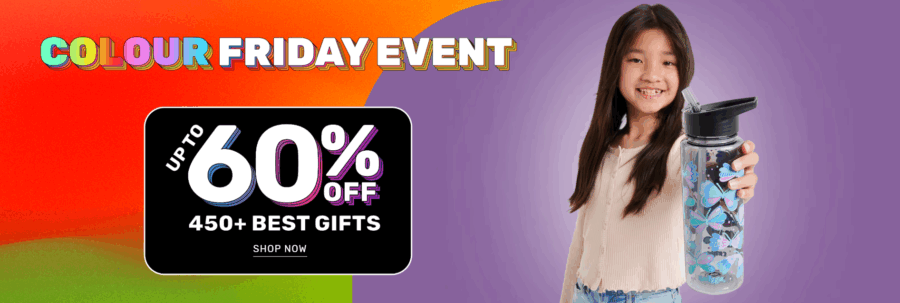 If you’re shopping for colourful stationery or school essentials, Smiggle is a great place to start. Their playful backpacks, quirky pencil cases, and fun drink bottles are always kid favourites. With their “Colour Friday” deals that reach up to 60%, it’s a good time to refresh school supplies or pick up a few cheerful gifts.