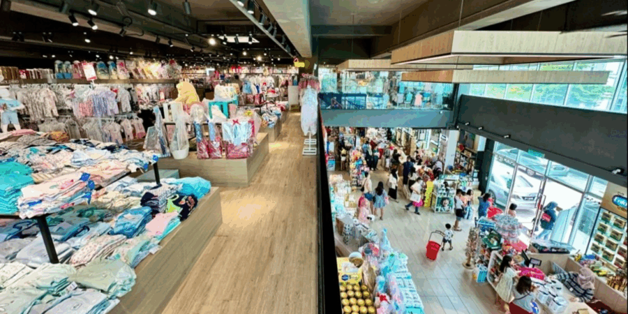 The mall spans three levels, making it simple to find what you need. Level 1 carries baby essentials, Level 2 offers clothing and Level 3 stocks bulkier items such as car seats and strollers.