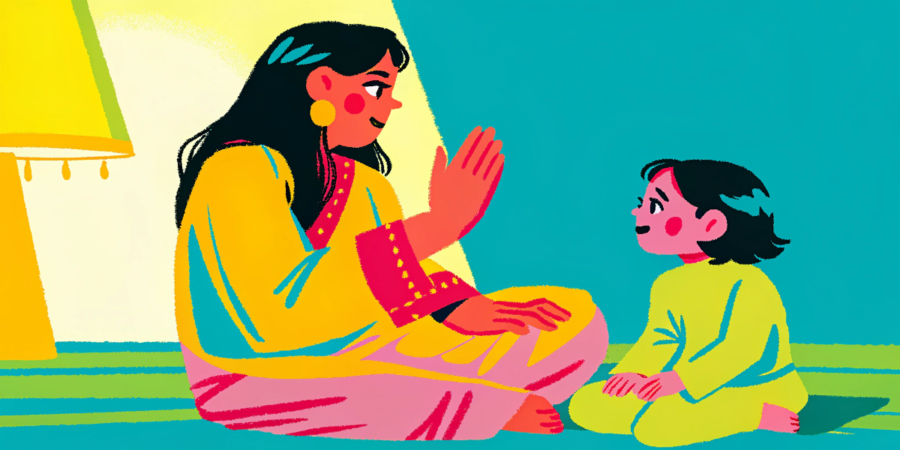 It also helps to remind them about simple manners such as greeting elders, saying thank you, and asking before taking food.