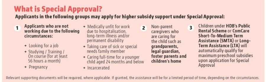 Non-working parents aren’t left out either, though the Basic Subsidy is lower at $150. However, they won’t qualify for Additional Subsidy.