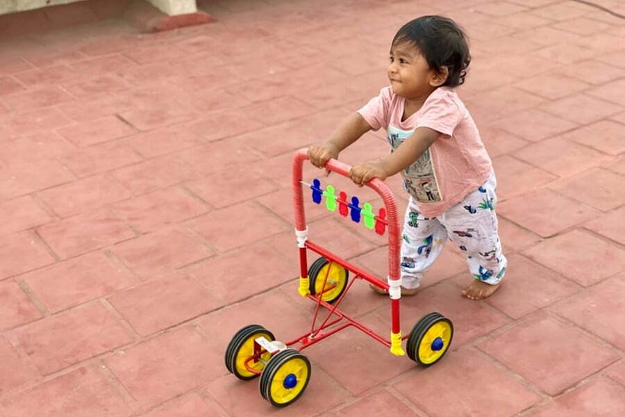 Mendorong baby push walker tidak hanya baik untuk memperkuat otot, tetapi juga membantu keseimbangan dan koordinasi.