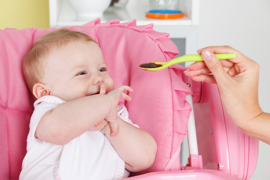 Adapun makanan pendamping ASI yang disarankan pada masa perkenalan adalah sekitar 2–3 sendok makan. Selanjutnya, Moms bisa meningkatkan porsi MPASI secara bertahap sesuai dengan nafsu makan Si Kecil.