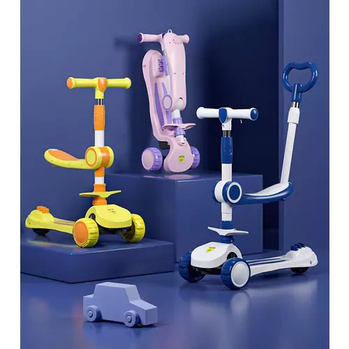 - Multifungsi: skuter, kursi duduk, dan push bike