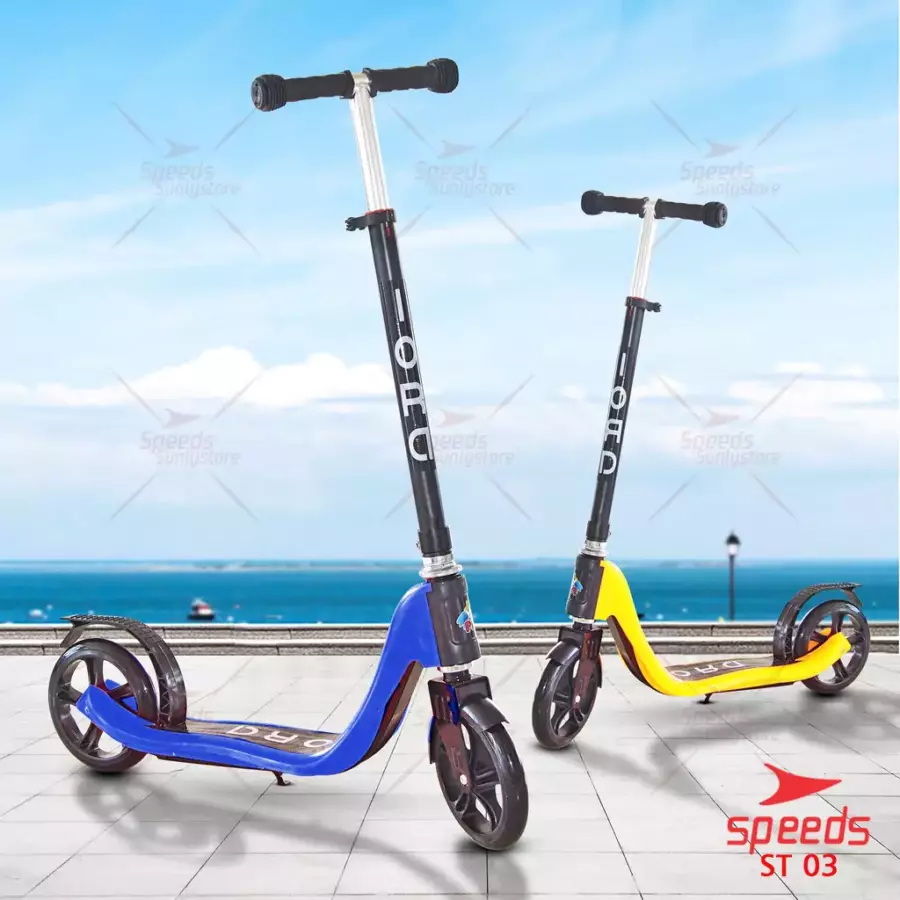 SPEEDS adalah skuter anak roda dua yang didesain khusus untuk anak usia 3 hingga 12 tahun. Bahannya terbuat dari besi hollow yang kuat, awet, dan tahan lama. Untuk keamanan dilengkapi dengan rem injak di bagian belakang. Pengarahannya juga mudah dan terdapat fitur musik dan roda lampu menyala jika berputar.