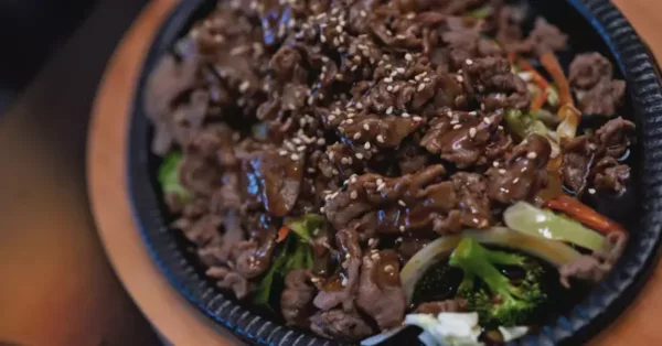 Marinasi daging dengan saus Teriyaki Bawang Kikkoman, parutan bawang putih diamkan selama 15 menit. Masak daging dengan sedikit margarin, masukkan bawang bombay (opsional) tambahkan sedikit merica (opsional). Sajikan dengan sayuran seperti selada atau wortel/buncis rebus.
