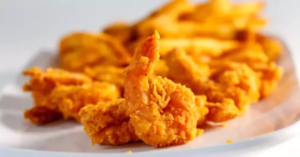 Bersihkan udang, baluri dengan adonan tepung yangs sudah dicampur garam, merica, kaldu jamur, dan air. Goreng udang, tiriskan, sajikan dengan saus mayonaise atau saus sambal.