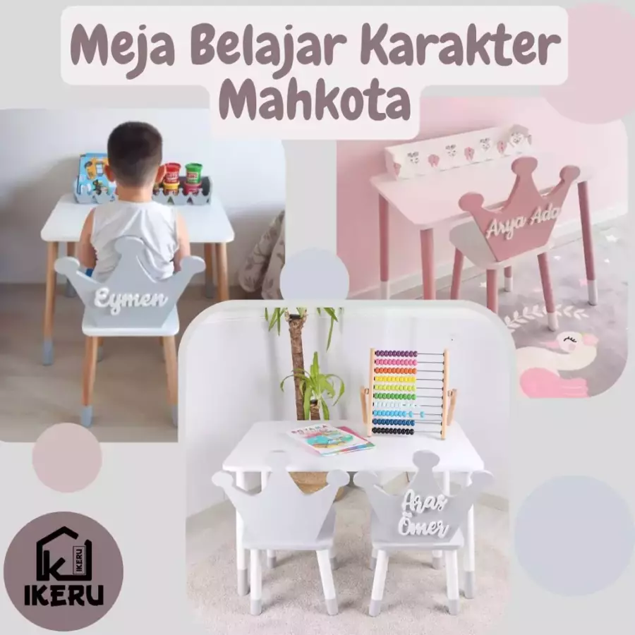 Meja anak ini unik karena kursinya berbentuk mahkota dan terbuat dari kayu jati belanda yang kokoh dan kuat. Ukurannya 60 x 45 x 53 cm yang bisa menopang berat badan hingga 85 kg. Moms juga bisa mengukir nama anak di belakang kursinya.