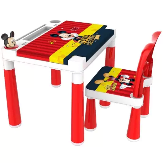 Meja anak satu ini besar mejanya 50 x 44 x 42 cm dan kursinya 30 x 28 x 46 cm yang cocok dan juga punya banyak tempat penyimpanan barang. Untuk varian warna juga banyak dan cocok untuk anak-anak. Bahannya plastik sehingga mudah dibersihkan dan anti air.