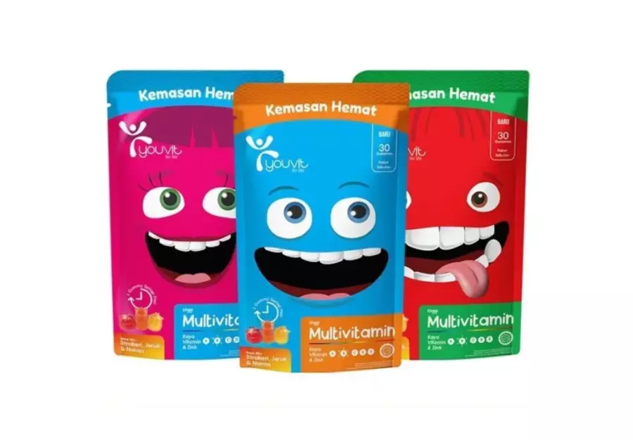 Nah, dalam satu bungkus vitamin, terdiri dari 10 vitamin (vitamin B kompleks, C, D, E dan A) dan 3 mineral penting yakni (selenium, iodium, dan zinc). Youvit Multivitamin Gummy Anak bisa mendukung tumbuh kembang, imunitas, dan aktivitas harian Si Kecil.